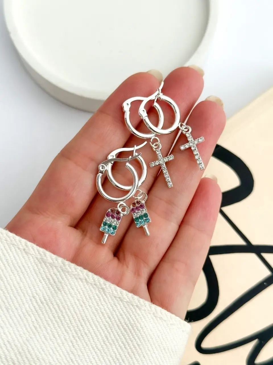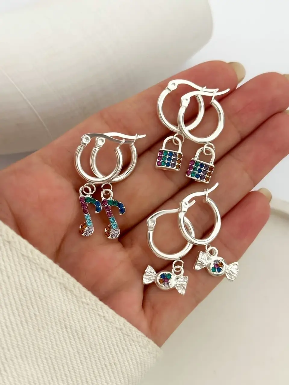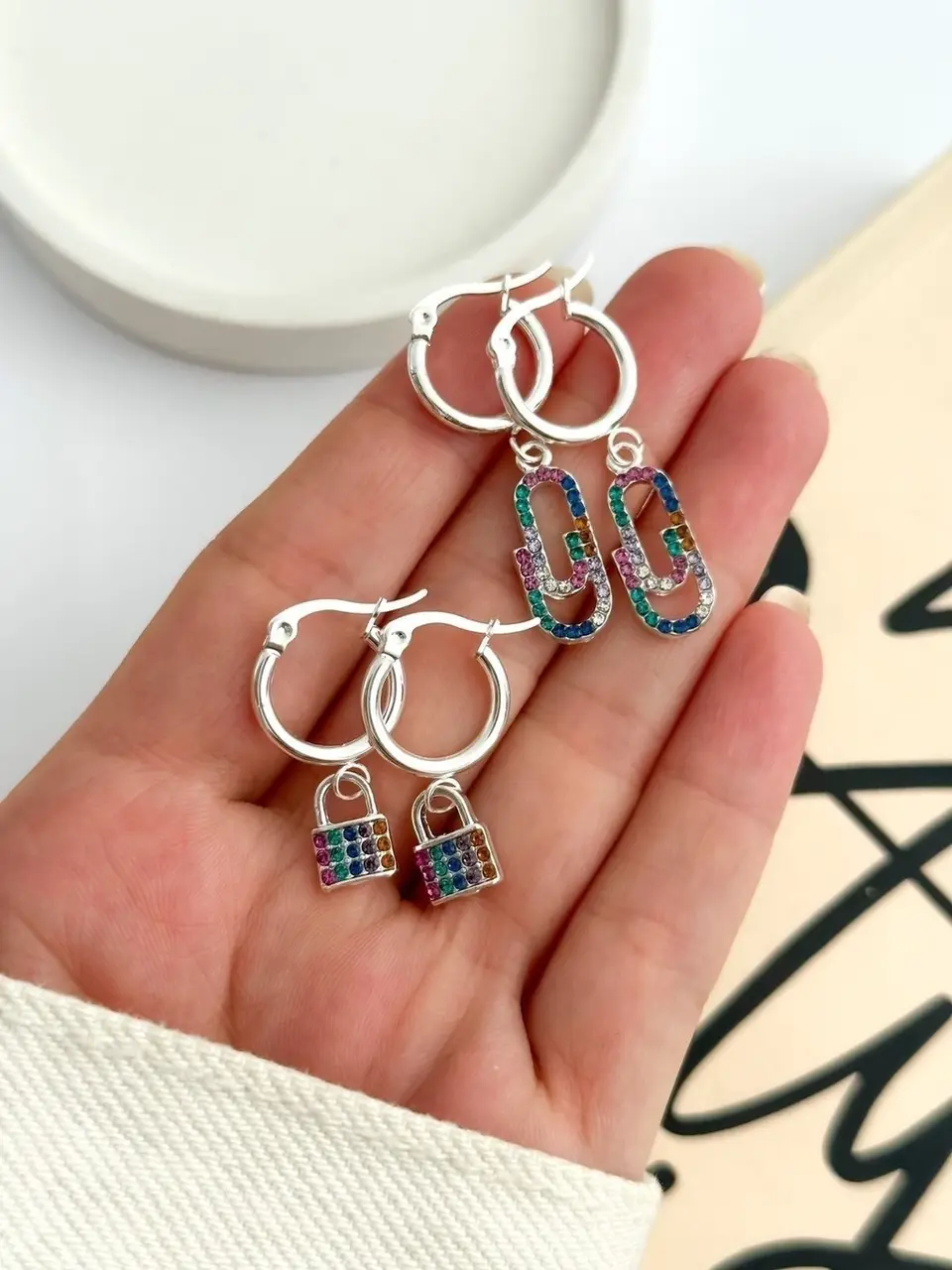 PACK X3 AROS BLANCOS STRASS PA448