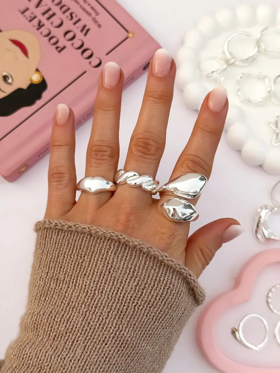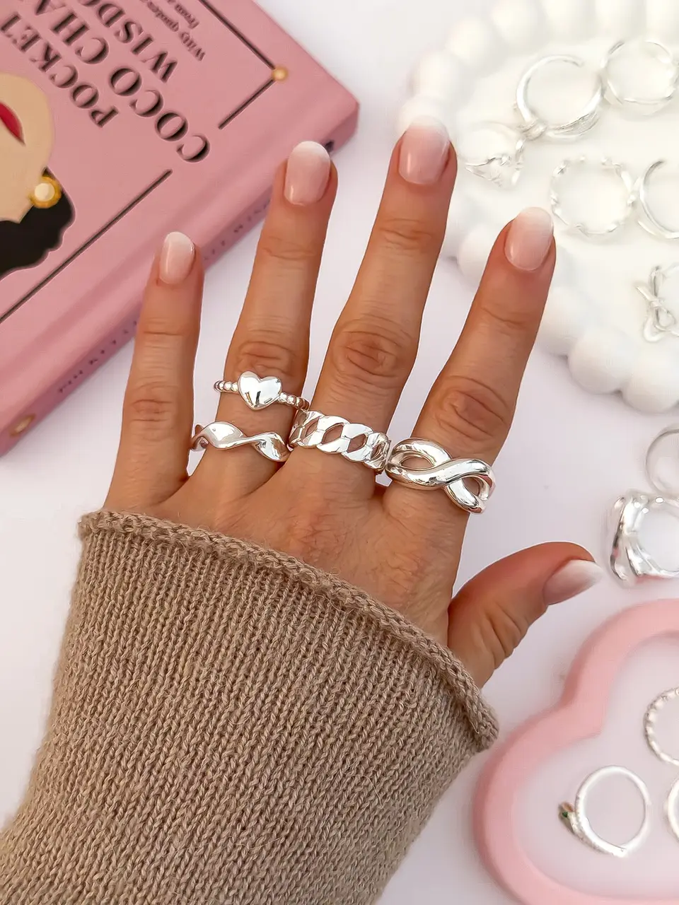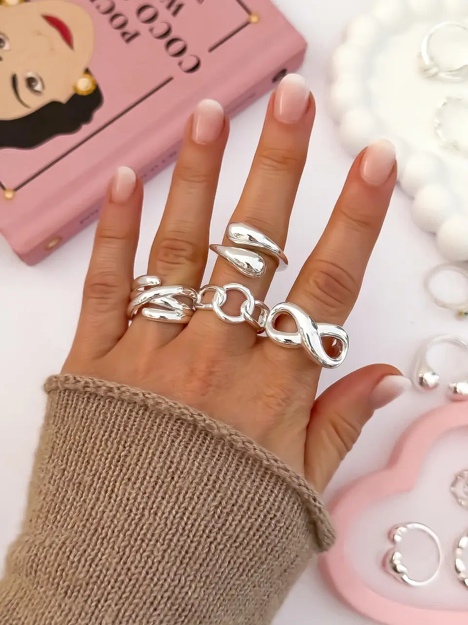 PACK X5 ANILLOS CHUNKY REGULABLES BLANCOS PA1118