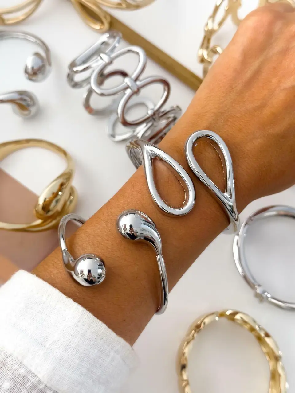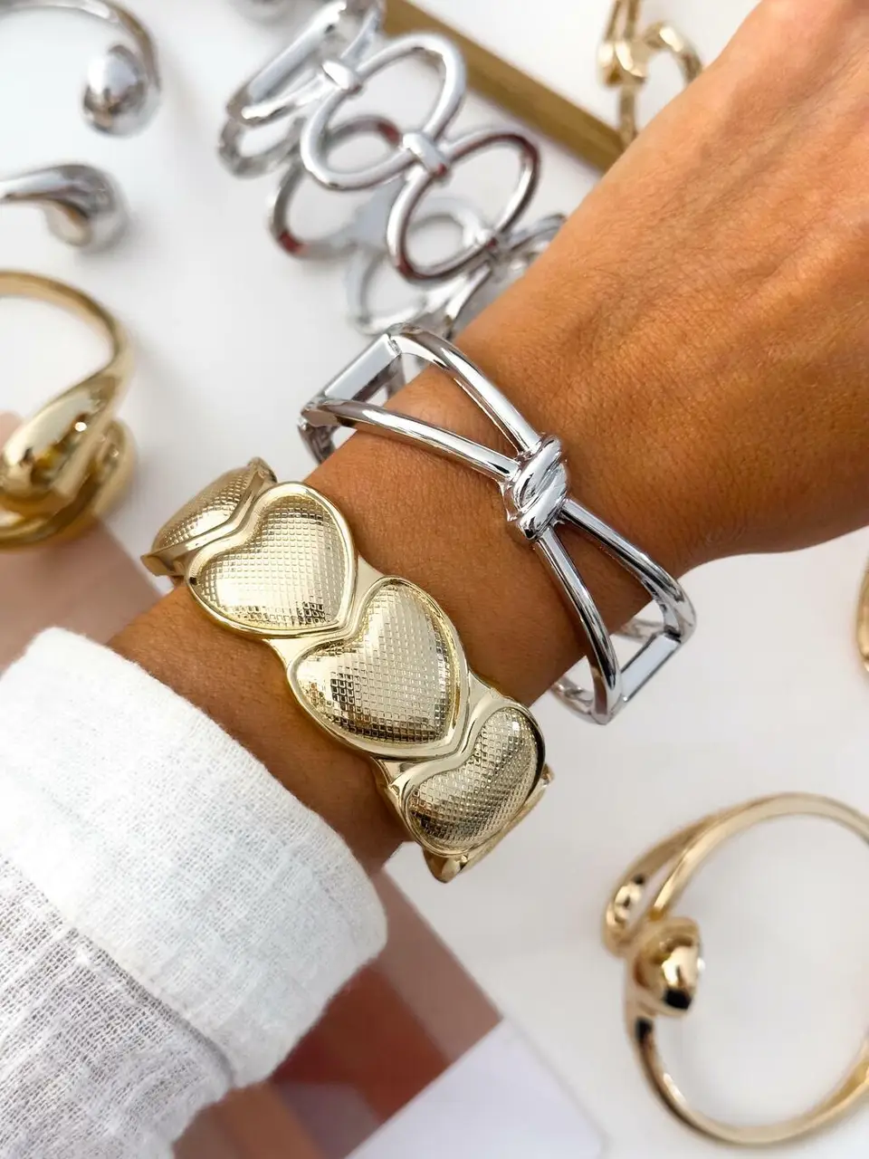 PACK X3 PULSERAS/BRAZALETES PLATEADOS PA996